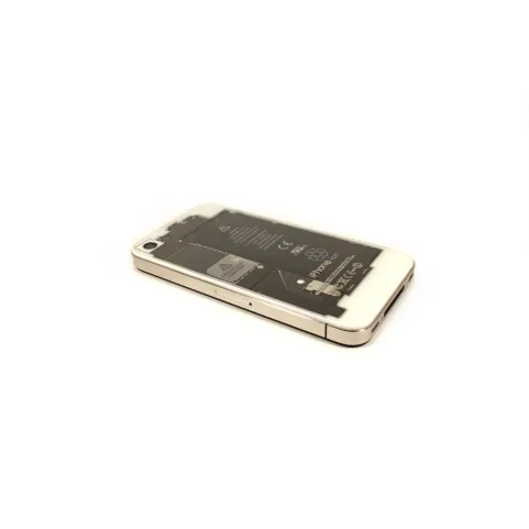 Glass Cover Posteriore Trasparente in vetro con bordi color Bianco compatibile con iPhone 4/4S
